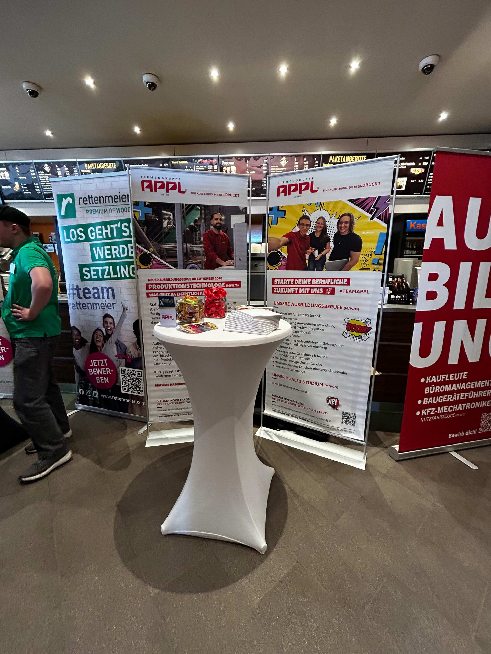 Die FIRMENGRUPPE APPL präsentierte am Montag, 23.03.2026, ihre Ausbildungsberufe und den dualen Studiengang auf der AzubiXperience im Nördlinger Kino.